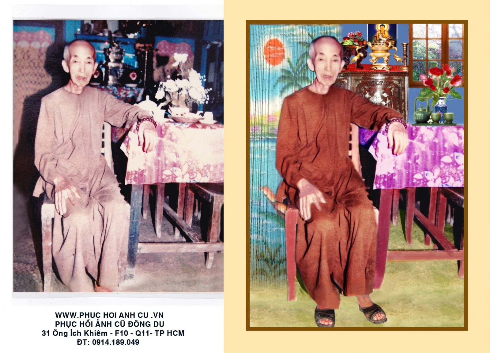 Ảnh Màu Huy Đạt là một địa chỉ phục chế ảnh cũ chuyên nghiệp và uy tín duy nhất tại TPHCM áp dụng công nghệ Trí Thông Minh Nhân Tạo (AI), giúp hồi sinh những tấm ảnh cũ, ẩm mốc, hư hỏng, và ảnh thờ vô cùng chân thật và sắc nét.